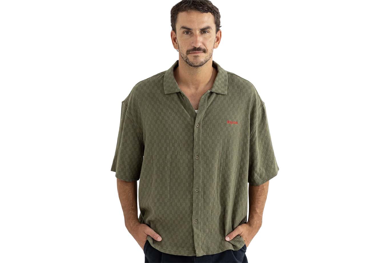A casual woven layer, the Wash Check Relaxed SS Shirt in Green features a lightweight textured check fabric with an easy, relaxed fit. Embroidered detailing at the LHS chest adds a refined touch.