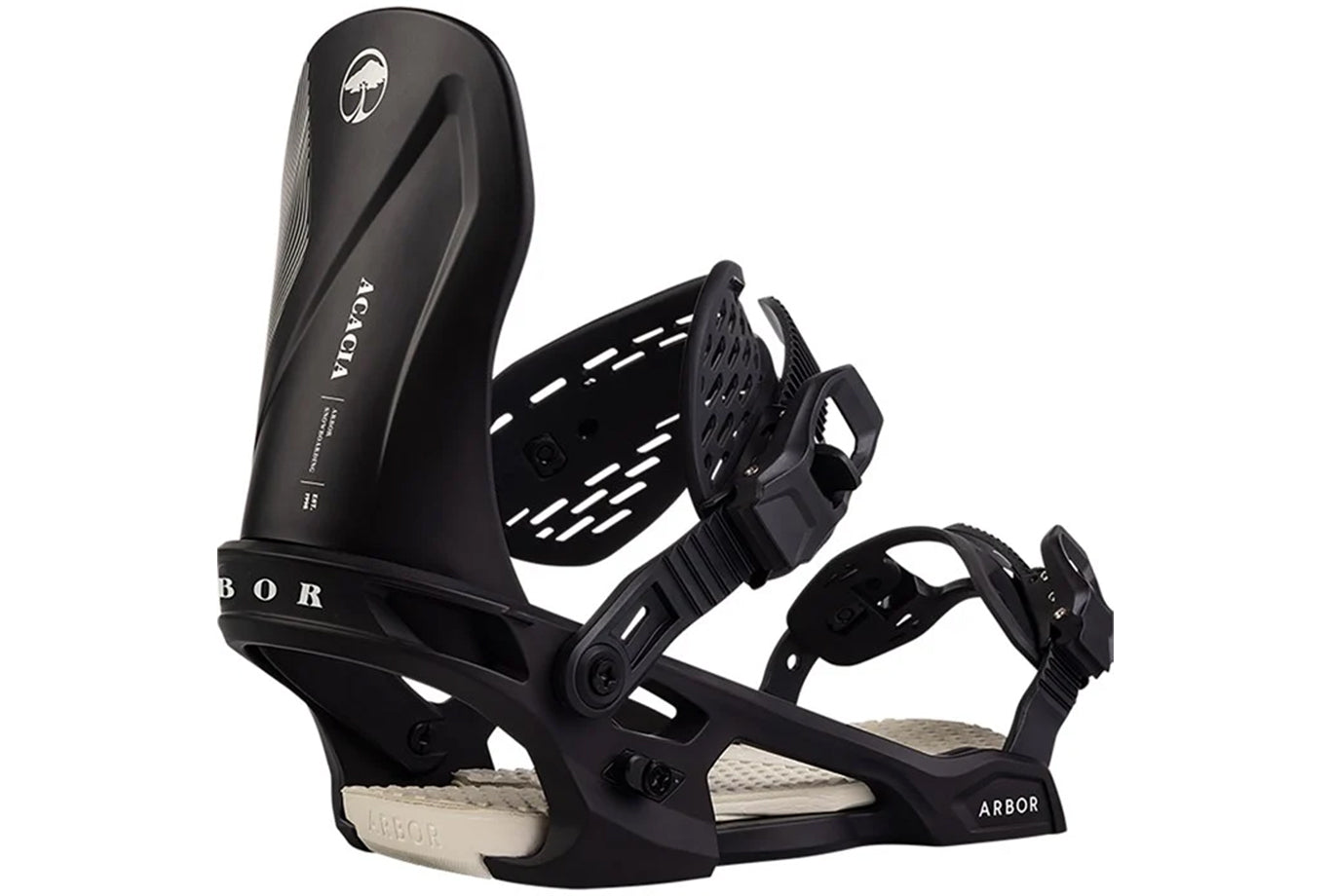 The Arbor Acacia Snowboard Bindings are a progression friendly choice that hit the sweet spot of comfort, performance, and value. With comfy straps, durable components, and a medium flex design, they strike the right balance for all mountain riding to help you improve your skills every time you head to the mountain.