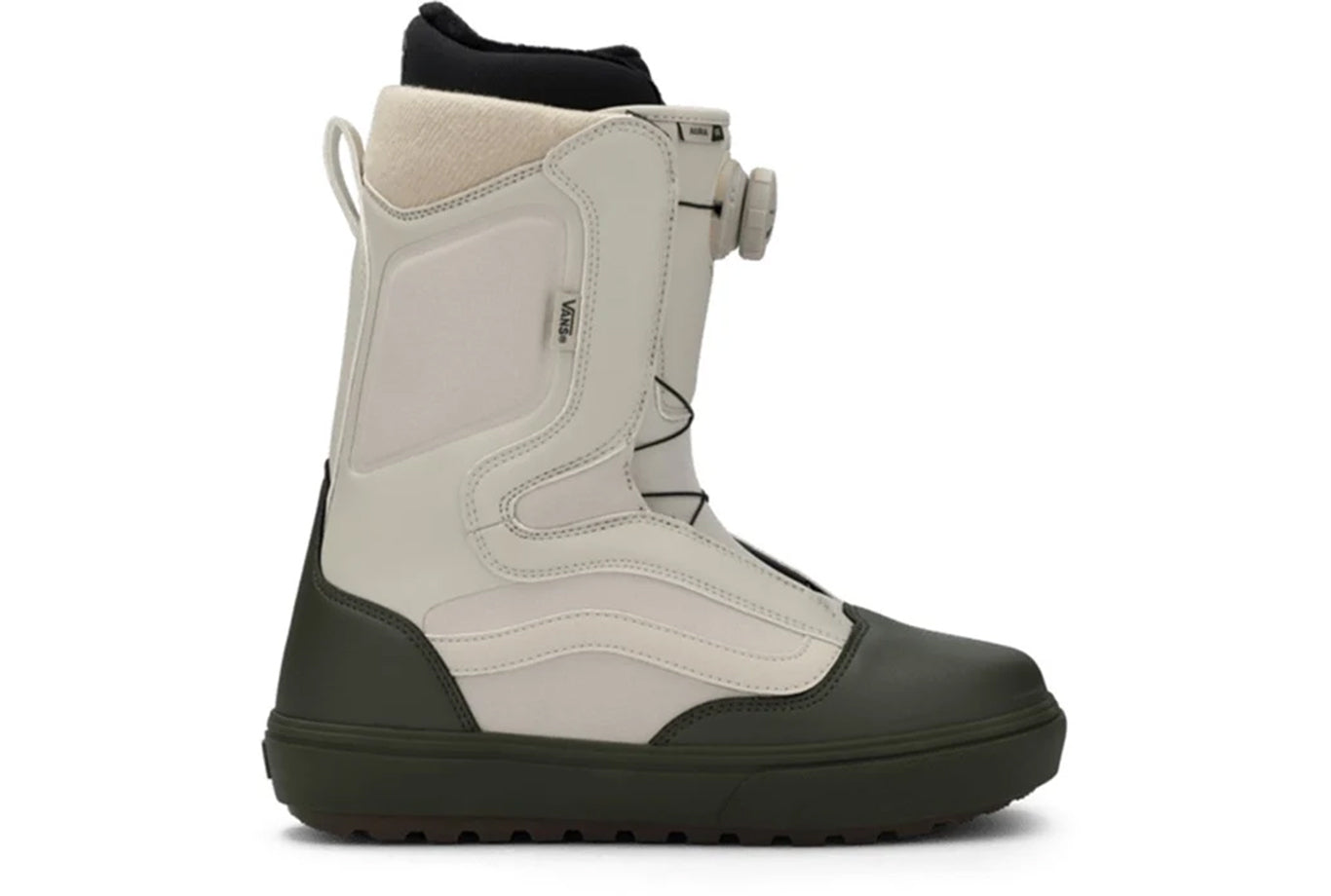 Simple, lightweight, and effective. The Vans Aura OG Snowboard Boots provide the durability and performance you need out of an all-mountain boot, but with a pared-down design that doesn't distract itself with all of the bells and whistles. The single Boa system will have you dialed in for a good time, and a forgiving flex and super comfortable liner will help you get the most out of any style of riding.