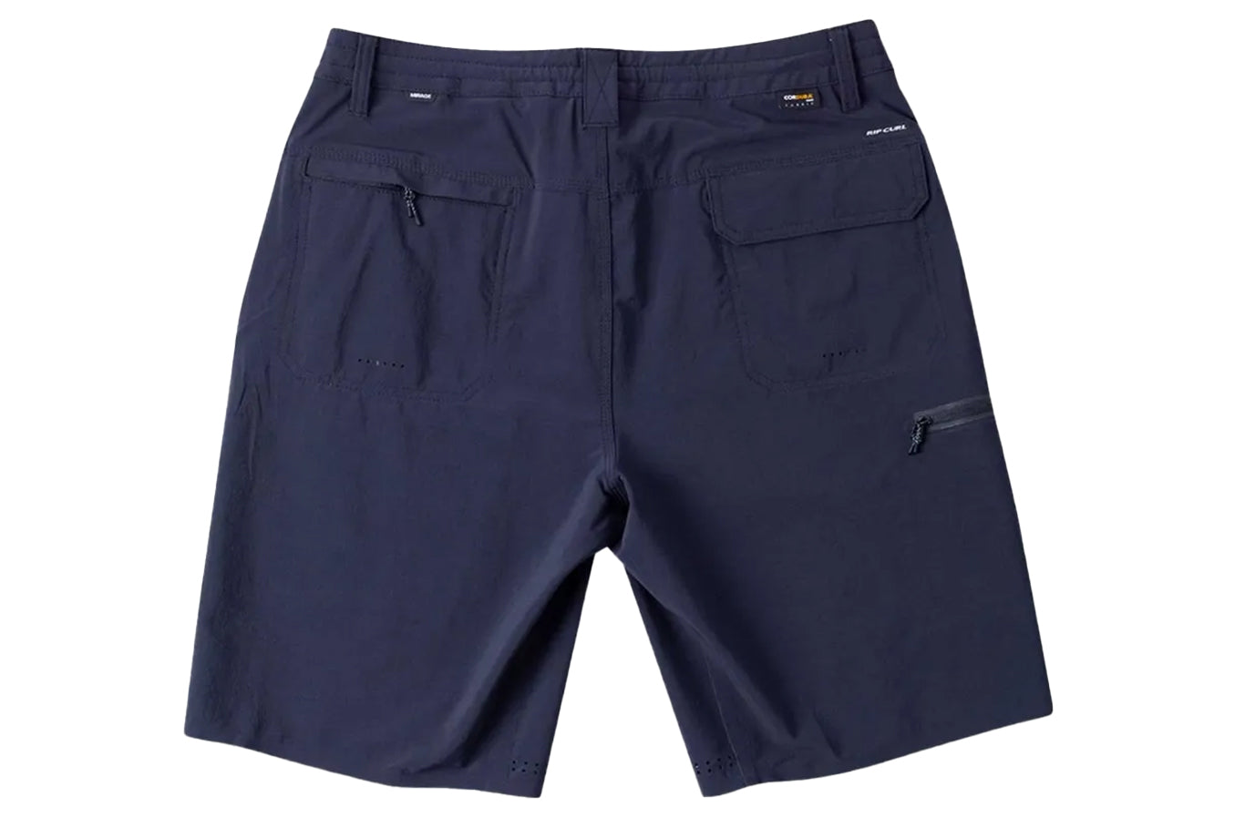 Experience global vibes with the Boardwalk Global Entry 19" Short, featuring a rubber button, silicon badge, woven label, internal drawcord, and zip pockets for a stylish and versatile surf experience.
