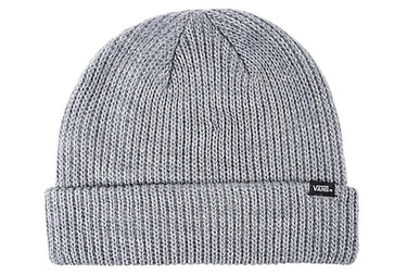 Complete your look with the Vans Core Basics heather grey beanie. This ribbed-knit beanie features a stylish heather grey design for a textured appearance, while the Vans script logo on the front cuff adds a touch of branding to any outfit.