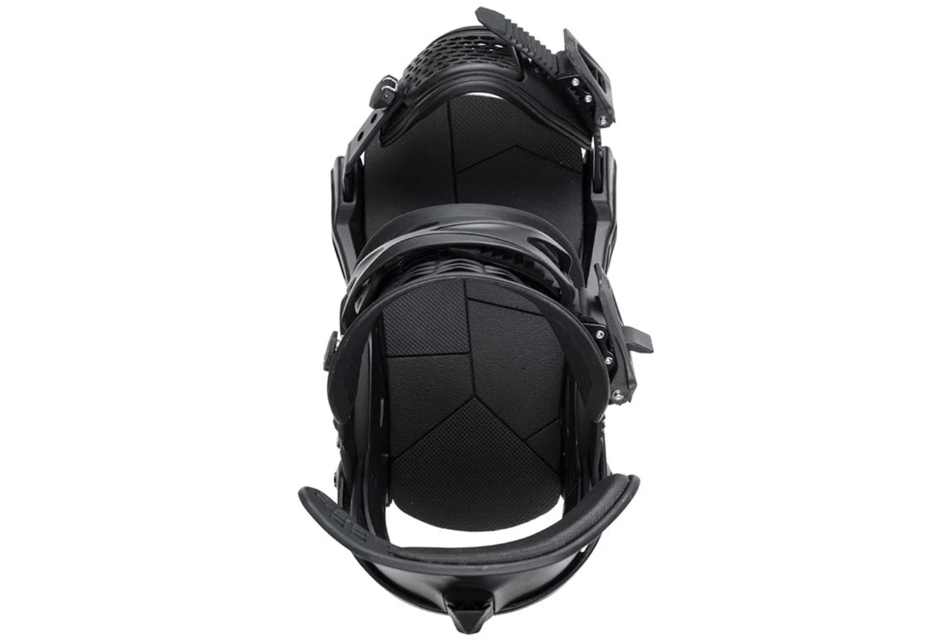 Skate Tech  Inspired by how easily and efficiently a skateboard turns, Skate Tech mimics the function of skateboard trucks. Traditional bindings diminish energy transfer by flexing and bending the baseplate, forcing you to crank straps down harder, ride with more forward lean, or run taller and stiffer highbacks. Skate Tech bindings bypass the middle of the snowboard and direct your energy right onto the board's edges, transfering more power to the board with less work.