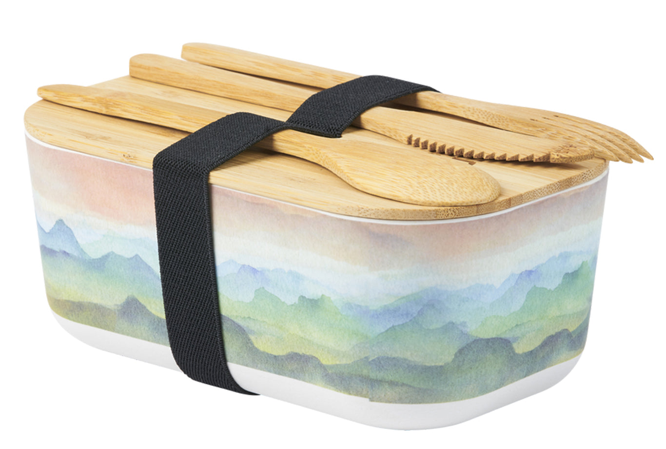 The Ebi bento set is our revisited Japanese lunchbox designed to be the perfect option for any meal when on the move. Here is a smart tip: the bamboo lid can also be used as a chopping board. Cutlery included, of course. A great kit for today's nomad!