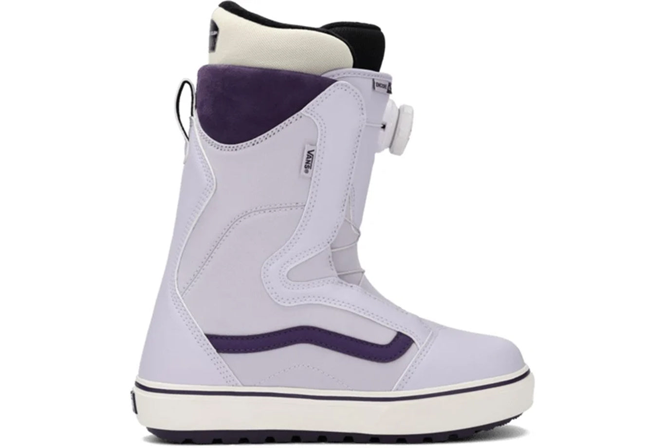 Simple, lightweight, and effective. The Vans Encore OG Snowboard Boots provide the durability and performance you need out of an all-mountain boot, but with a pared-down design that doesn't distract itself with all of the bells and whistles. The single Boa system will have you dialed in for a good time, and a forgiving flex and super comfortable liner will help you get the most out of any style of riding.