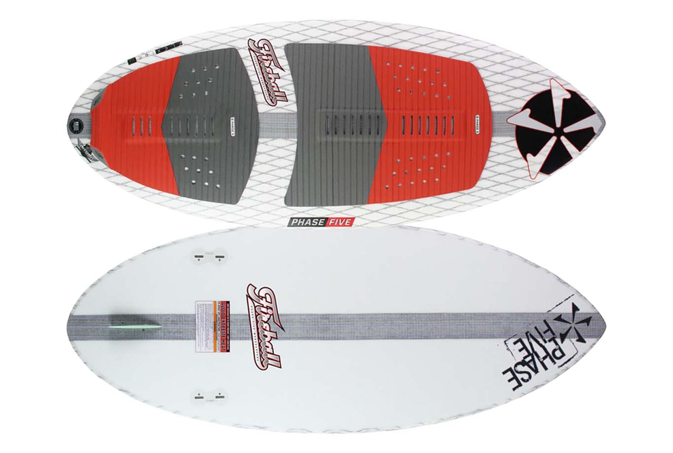 If you can't decide on surf or skim style, why not have have both? The Fireball is back in the P5 Lineup for 2022 after many requests for the Hybrid style wakesurf board to return. It features the Matrix outline with a surf style EPS core and built with our FLEXtec V2 construction. It is designed to be rode with either Twin FCS surf fins, or a single DT1 Skim style fin. The Fireball has reduced volume and rocker than your traditional surfboard enhancing responsiveness and speed. If you want the loose skim feel, install the DT1 fin in the rear FCS box to crank some shuv’s. Once you are ready to slash and boost airs, remove the skim fin and install the twin FCS surf fins in the forward fin boxes. The Fireball is one of the most versatile boards in the lineup, and does a great job introducing the rider into both disciplines of wake surfing with one single board.