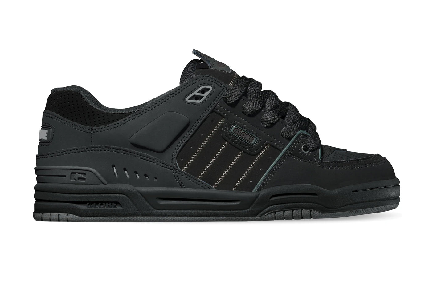 The Globe Fusion in Black/Night is a rugged, fully padded skate shoe with step-in sock liner. Featuring ollie reinforcement, Globe’s S-Trac™ sole pattern and heel stabilizer.