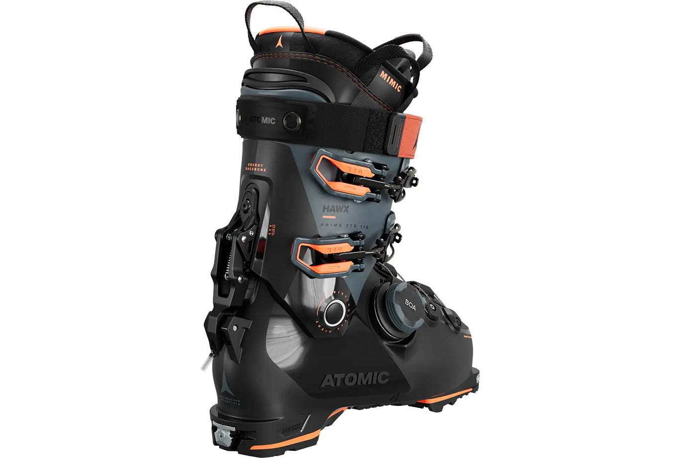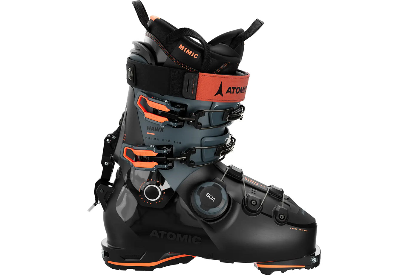 Combining lightweight touring capabilities with downhill performance, the Atomic Hawx Prime XTD 110 BOA GW is a medium-flex freeride touring boot for mid-volume feet. Built with next-gen Profile construction, key reinforcements are added for strength on the descent. The BOA® Fit System dial can be micro-adjusted in dual directions for a custom wrapped fit of the lower foot. Perfect your fit with a Mimic Gold liner that comes pre-shaped around your foot and ankle and heat-moldable Mimic Technology to match your physiological needs. Customize the cuff and shell with in-store Memory Fit. On the way uphill, Free/Lock 4.5 securely locks the cuff to the shell and has adjustable forward lean. Cuff rotation of 54º delivers epic natural movement for unimpeded walking. GripWalk Sole is compatible with MN, MNC and pin bindings. This medium-volume boot with a 100mm last is ready to explore beyond the boundary.