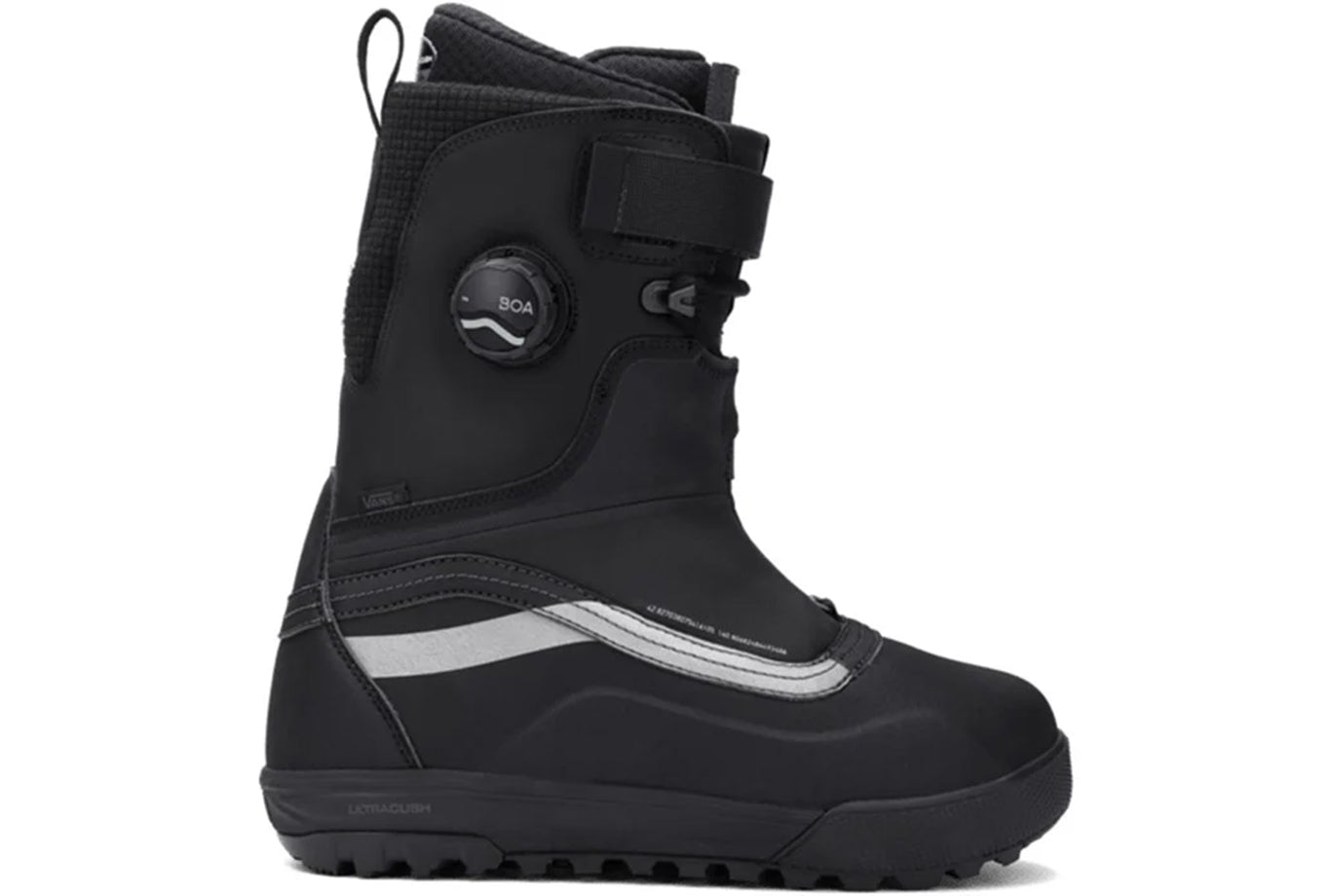 Vans Hybrid Plus Boa – The Hybrid system merges traditional lacing with the power of Boa closure at the instep. The Hybrid Plus system expands the range of flex control by adding an extra Boa pass around the back of the boot and across the instep to optimize the lines of pull and maximize flex control.