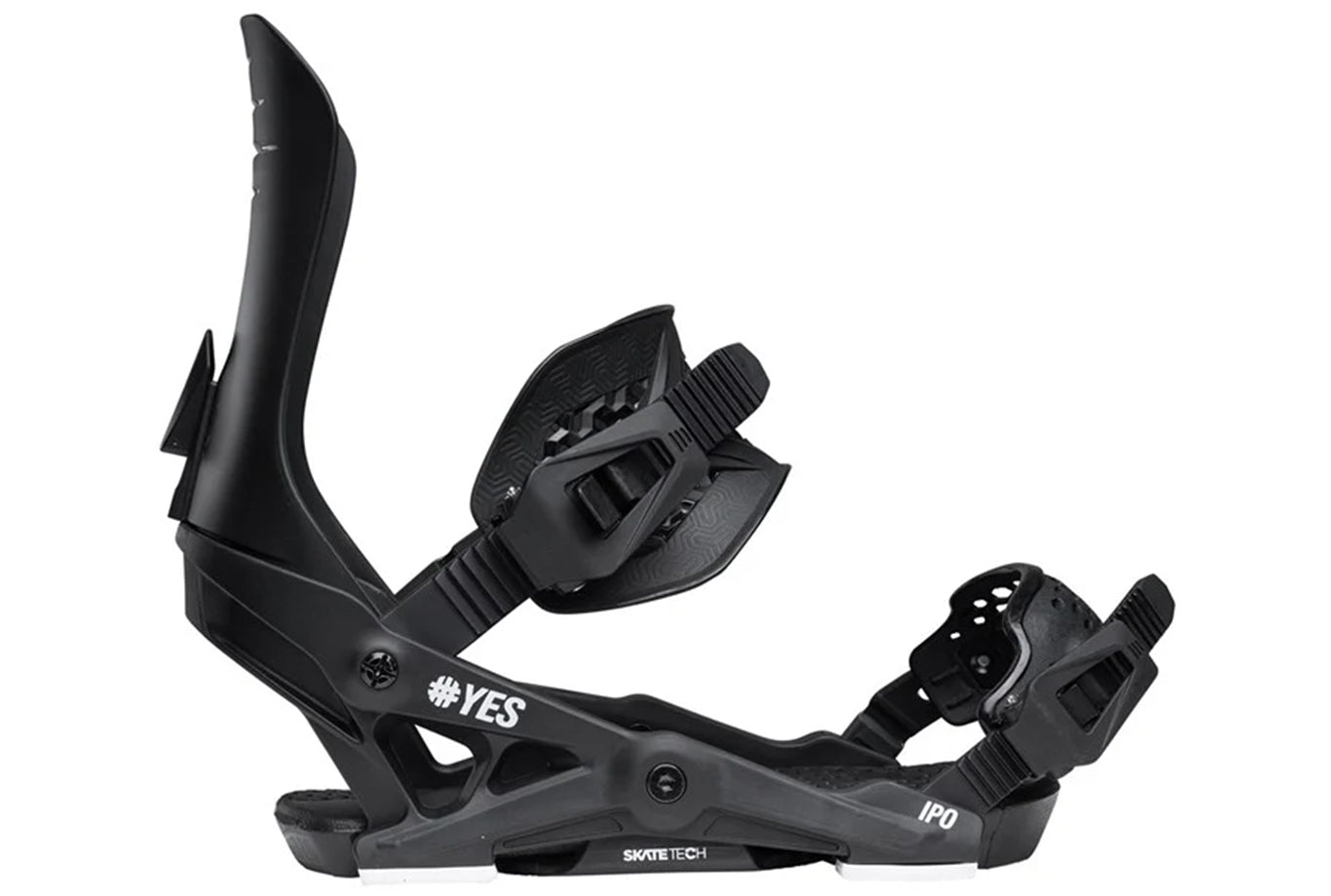 The Yes. IPO Snowboard Bindings are your go-to daily drivers for all-mountain fun and fearless progression. With a medium flex, laid-back highback, and buttery-smooth Skate Tech, they’re built to flow from groomers to side hits with style. Whether you're carving corduroy or slashing pow stashes, the IPO keeps the vibe loose and the ride dialed.