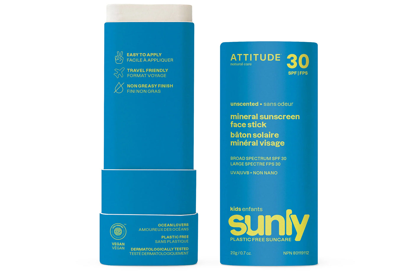 Take care of your family with Sunly. ATTITUDE™ SPF 30 sunscreen face stick is formulated with non-nano zinc oxide to limit our impact on coral reefs. This mineral filter provides broad spectrum protection against UVA and UVB rays. Practical and environmentally friendly, this sunscreen stick comes in a biodegradable cardboard tube and applies easily without leaving white traces. Its EWG VERIFIED™, vegan and dermatologically tested formula lets your kids enjoy outdoor activities with peace of mind!