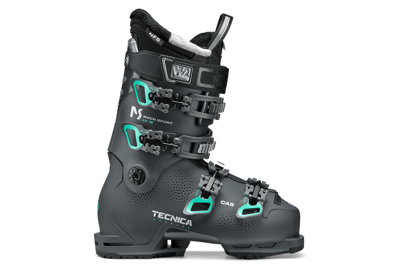 A ski boot that delivers comfort and confidence, the Mach Sport LV 85 W is designed for intermediate female skiers with low-volume feet. Women’s specific features include the C.A.S. Cuff Adapt System, which quickly and easily adjusts volume around the calf to fit a variety of lower leg shapes, and the Women's Natural Stance, which places you in a perfectly balanced position. An anatomically-shaped NFS liner offers warmth and a comfortable, secure fit. If needed, you can also add personal customization with Tecnica’s C.A.S. system to solve any additional fit problems. An 85 flex provides a smooth progressive flex, while the Double Quick-Instep and Lift-Lock buckles make for easy entry and exit. The Mach Sport LV 85 W combines the comfort needed to keep you on the mountain longer with the performance required to take your skiing to the next level.