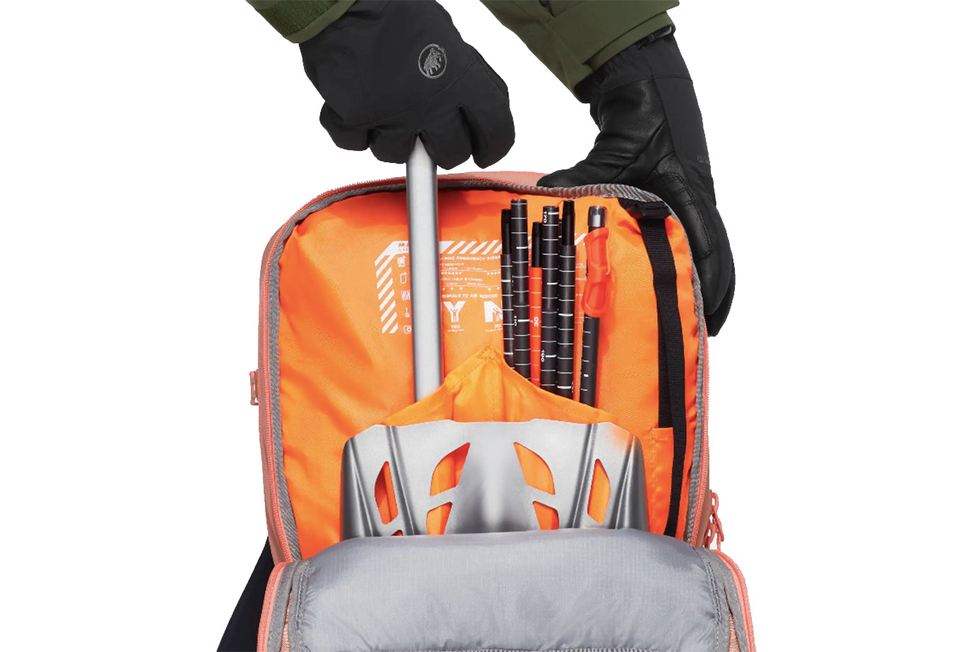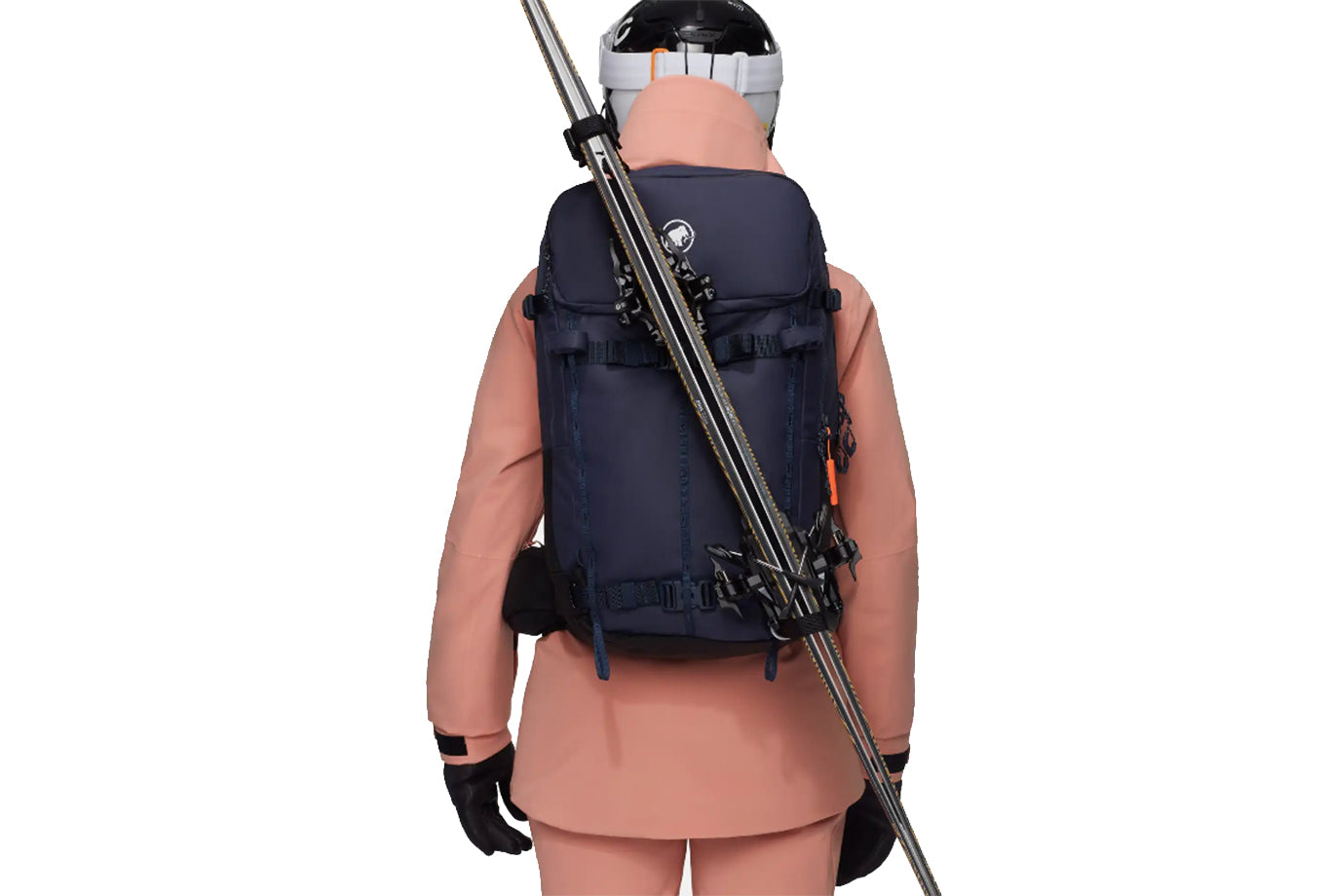 The legendary Nirvana is our true snow sports pack, optimized for freeriding and lift-supported ski touring. Versatile and well-equipped with specialized winter features, the Nirvana 35 is the ideal partner for a wide range of plans. Organize and stow all your gear with easy access to the main compartment through the 270° zippered back panel. A separate avalanche equipment compartment ensures you are always prepared, while a dedicated internal sleeve makes the pack compatible with the Mammut Back Protector. Skis and splitboards can be attached diagonally or A-frame style. An optimized carrying system and women's fit, features adapted shoulder straps, a tailored hip belt, and a shorter back length for maximum comfort and freedom of movement. The specially selected fabrics, including the extremely robust outer, are PFC-free and made from recycled materials.