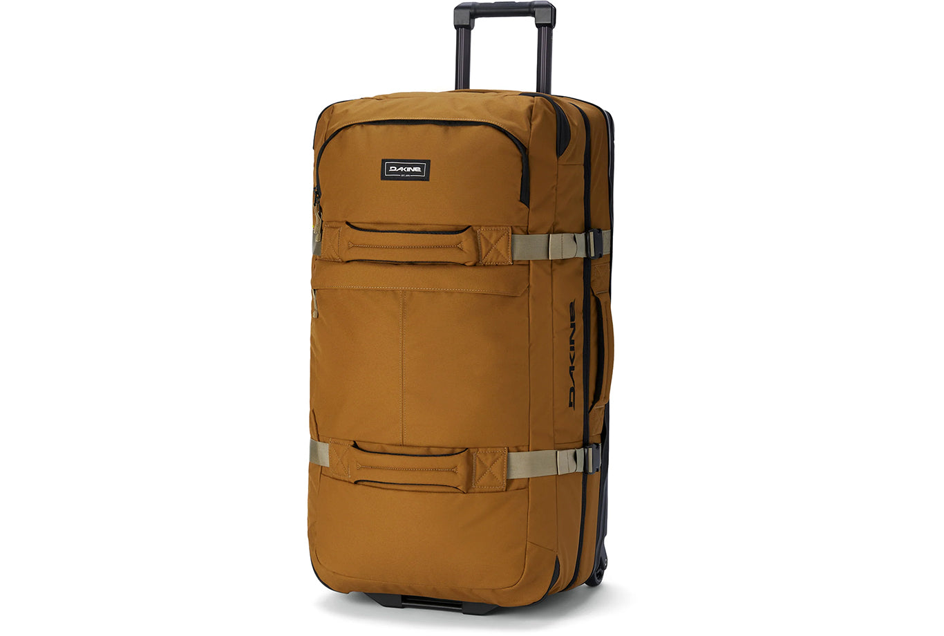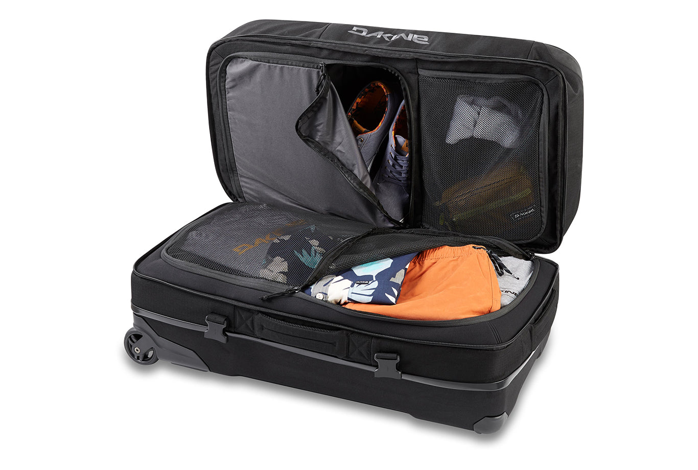 Living the adventure life is gear intensive. When your next mission calls for a little of everything, the Dakine Split Roller 110L bag makes getting it all there easy. The bag divides organization into a split-level design that gives easy access to multiple large compartments. It's like a traveling locker room that you can live out of while on the road. Mesh dividers maintain visibility and the collapsible Split-Wing feature lets you compress the bag for easy storage when not in use. Bomber oversize zippers provide years of reliable closure, and durable wheels keep you rolling down sidewalks and even dusty roads with ease.