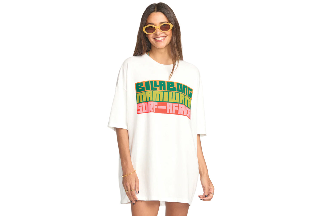Our Billabong x Mami Wata graphics are a celebration of African surf culture. This collaboration Surf Africa tee makes a statement in bold graphics while keeping you comfy with an oversized boyfriend fit and soft, washed cotton knit. This laidback crew-neck tee begs for a casual weekend paired with your favorite bikini bottoms or cutoffs.