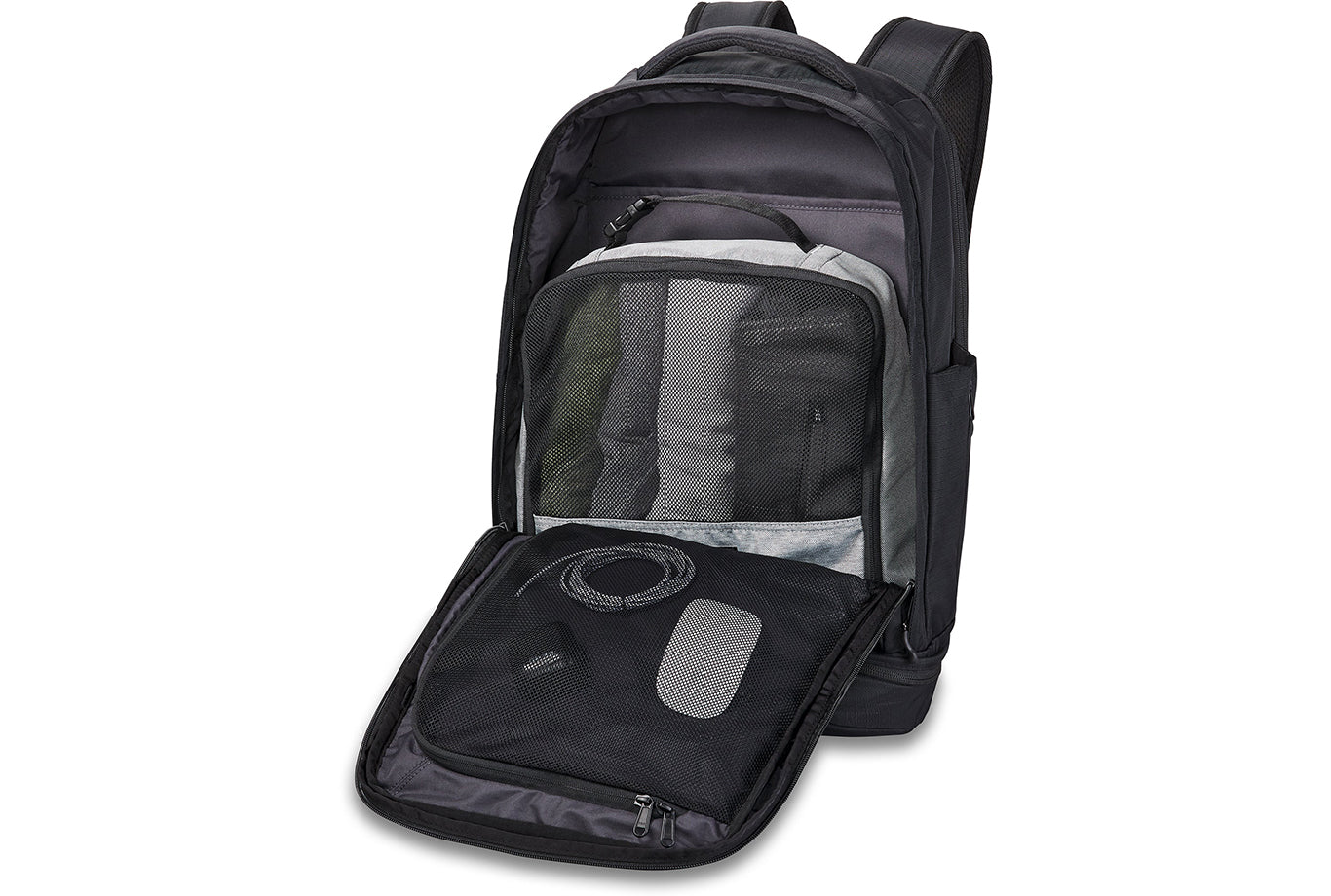 • Main compartment with split level organization and mesh divider